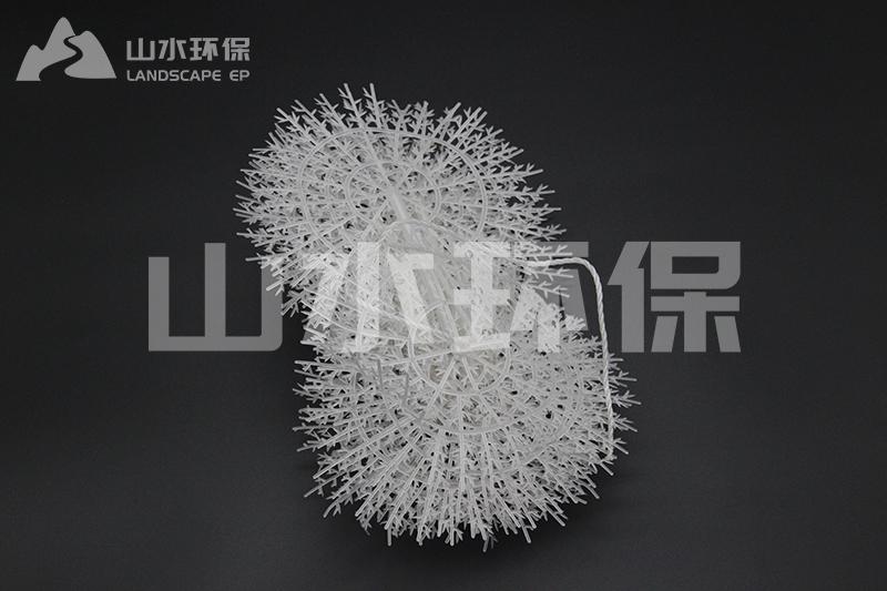 半軟性填料具有散熱性能高,阻力小,布水、布氣性能好,易長膜,又有切泡作用。它所用的材料有聚丙烯、聚乙烯制成。用于污水、廢水處理工程,配套于接觸氧化塔、氧化池氧化槽等設備。 單元直徑一般有Φ120、Φ150、Φ200,中心繩有塑料繩及纖維繩,規格可根據設計部門及用戶而定。